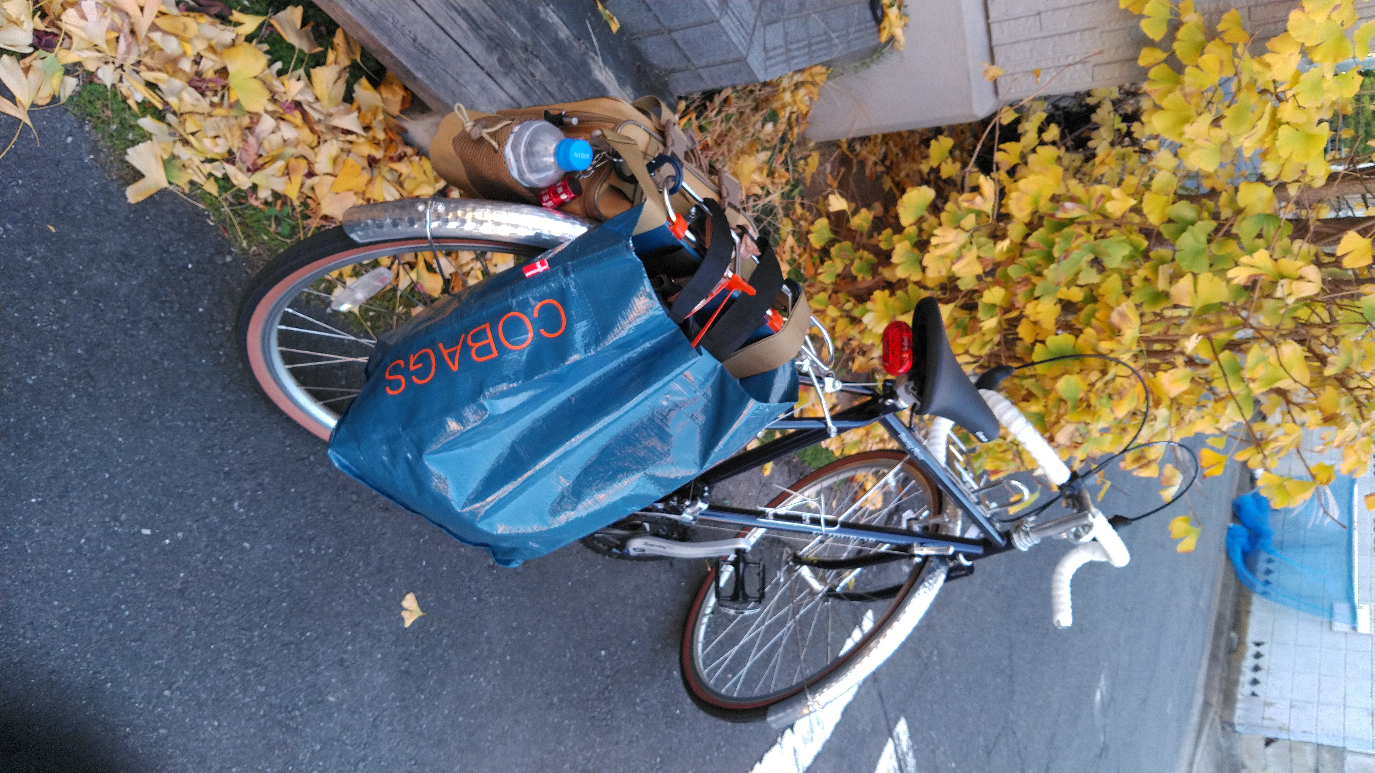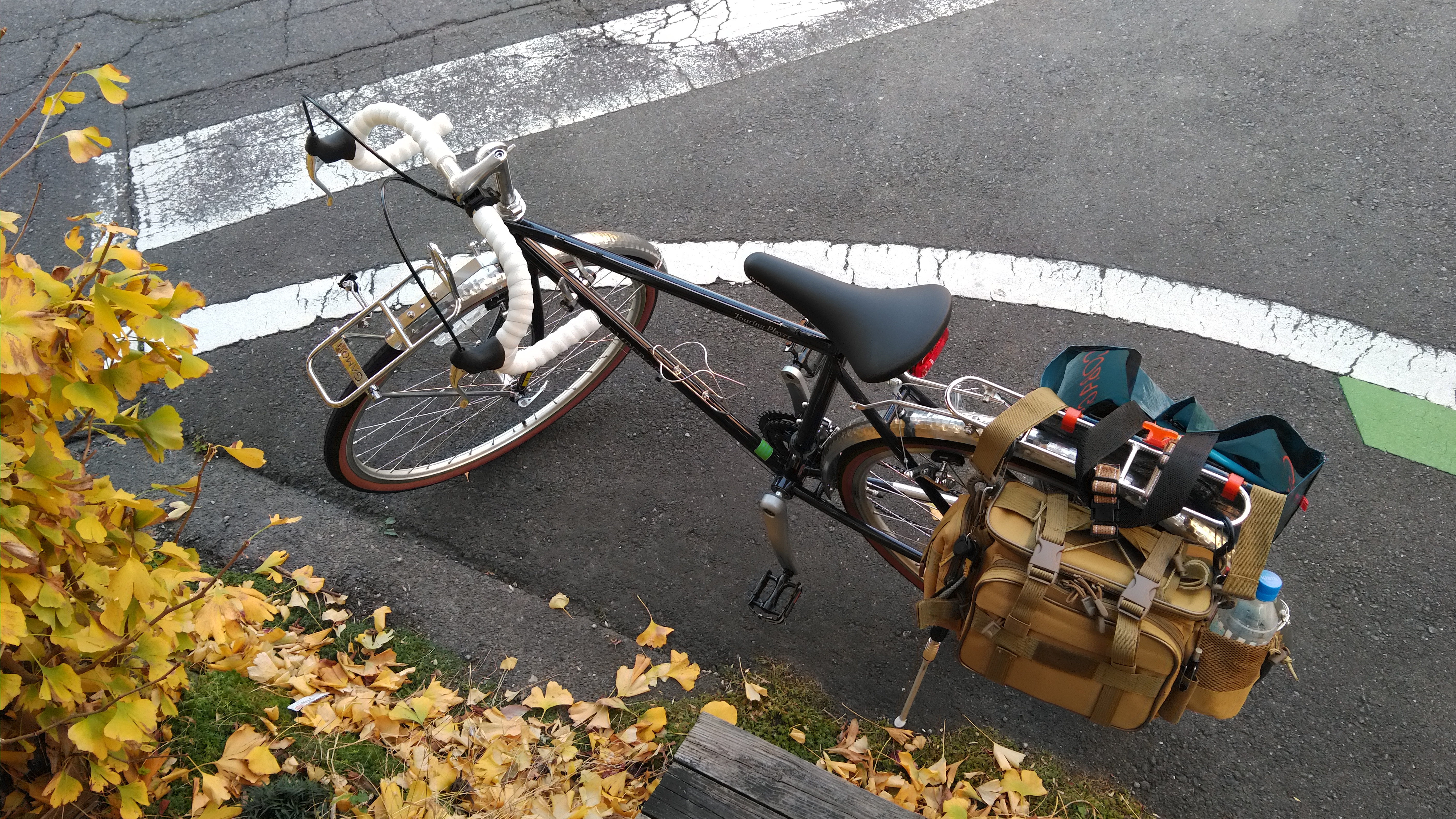 なにやらリアキャリアの左右に荷物が下がっていますが,