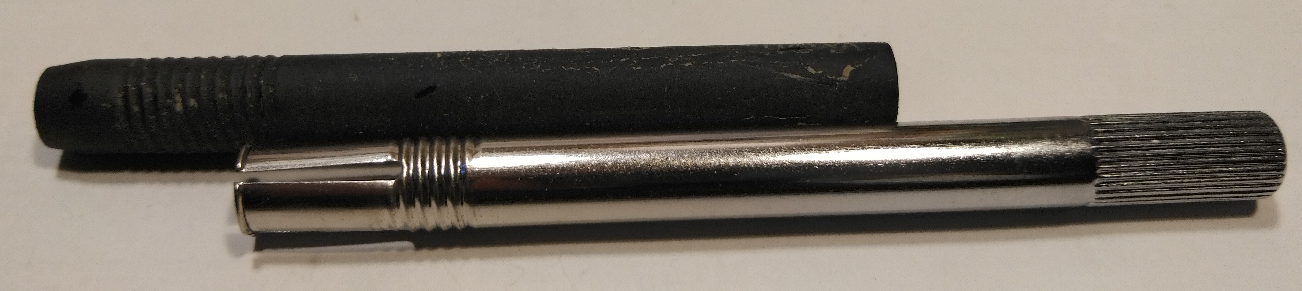 上は先端部分は銀鳥のロング補助軸と同一です。後ろの黒い部分は木軸で,