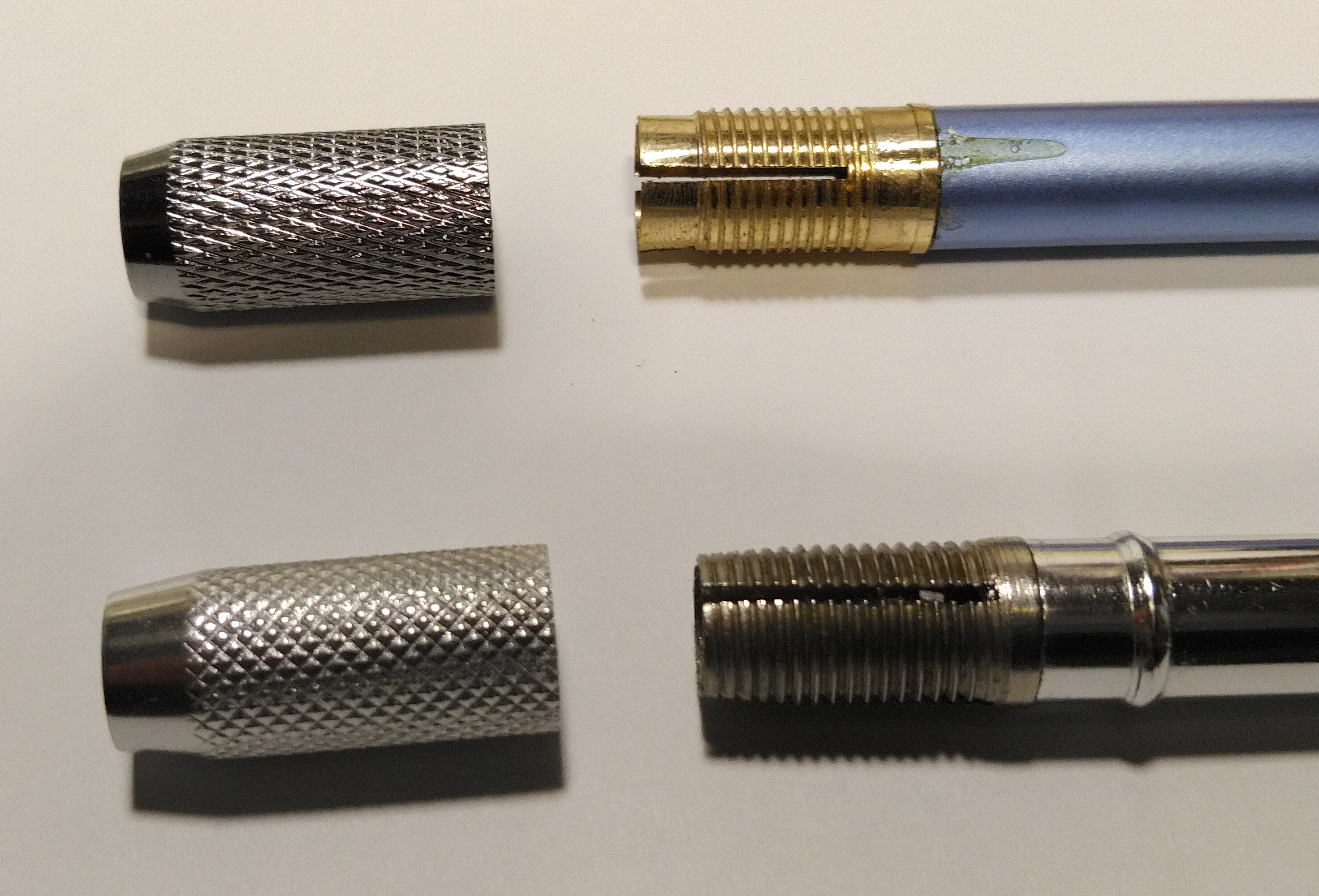 ネジ部分の加工精度は悪く, 少々がたつきます。削りくずがねじ山に残っているものもありました。