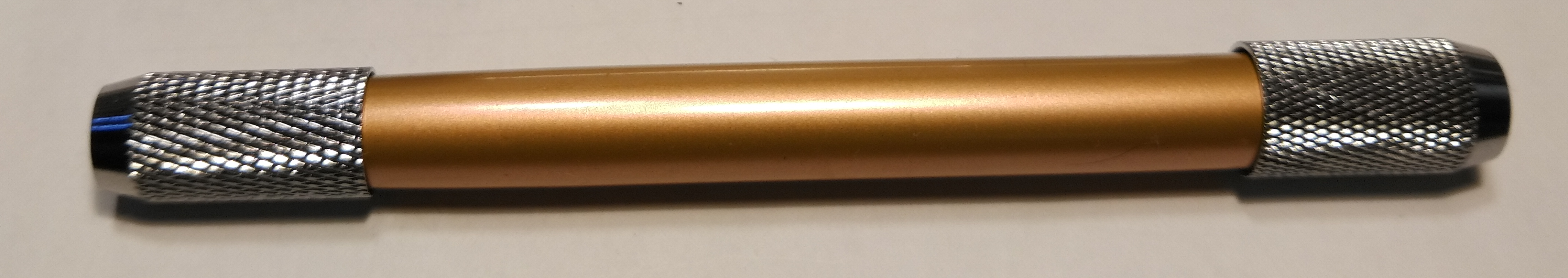 木製の本体部分の太さが11mm, 真鍮製の先端パーツ部分も全く同じ太さです。