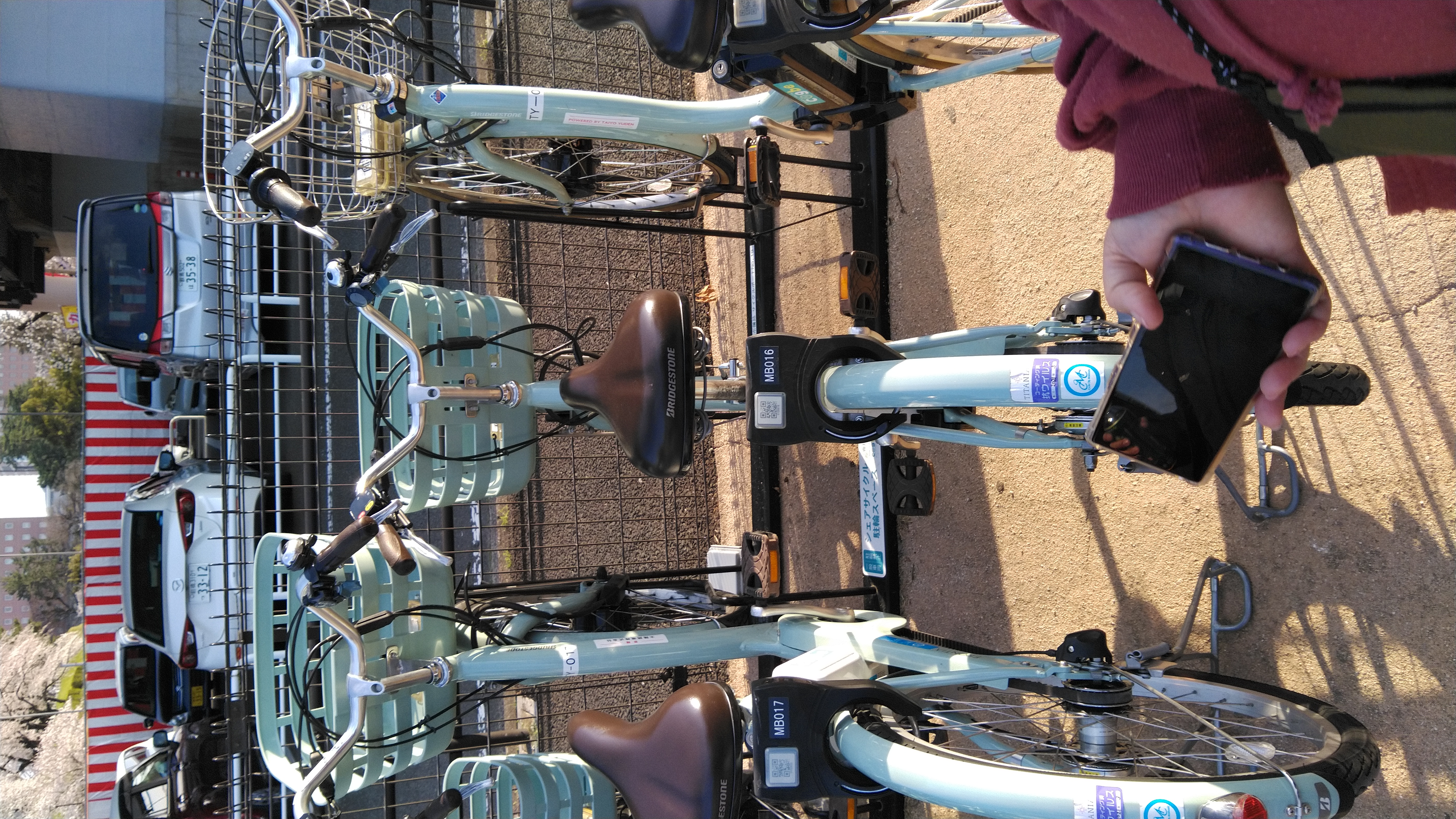 車輪止めに自転車を載せ(再び重い…)スマホのアプリから返却手続きをします。
