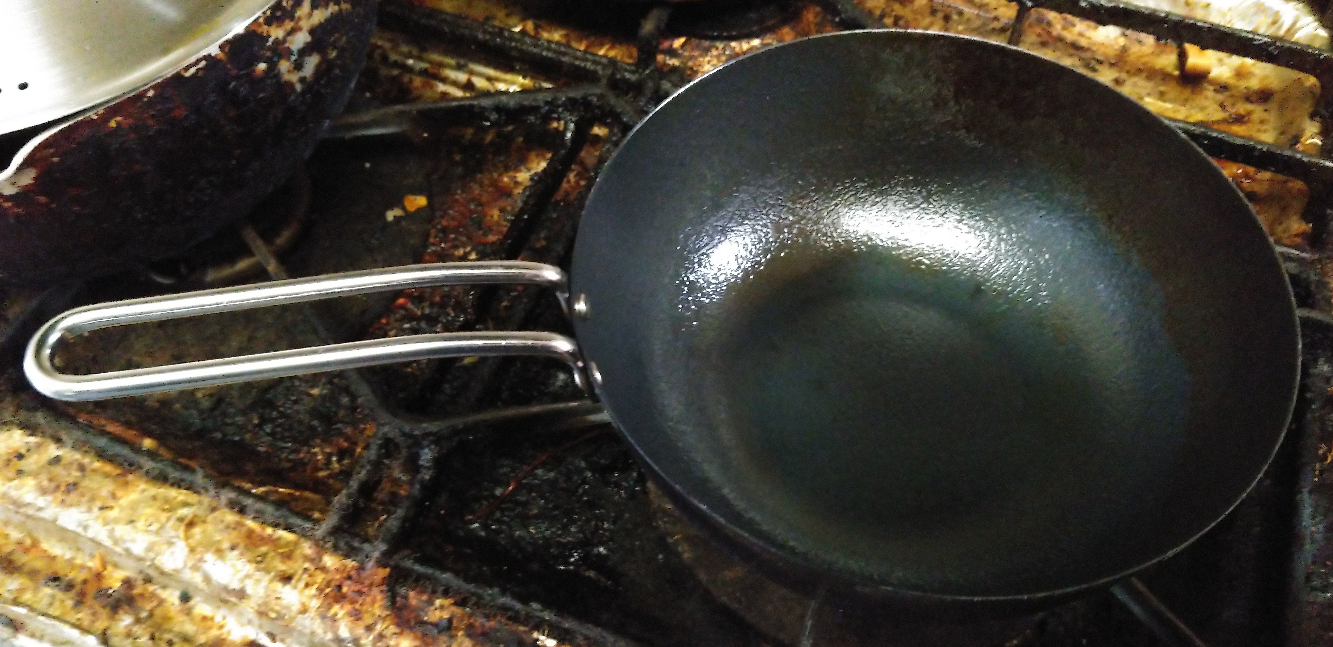 磨き終わったら火に掛けて水分を飛ばし, 油ならしを行います。